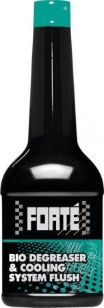 Forté Bio Degreaser and Cooling System Flush on erikoispuhdistustuote, joka perustuu liuottimiin ja orgaanisiin happoihin. Se poistaa jäähdytysjärjestelmästä öljyn, lietteen, kattilakiven ja korroosion.